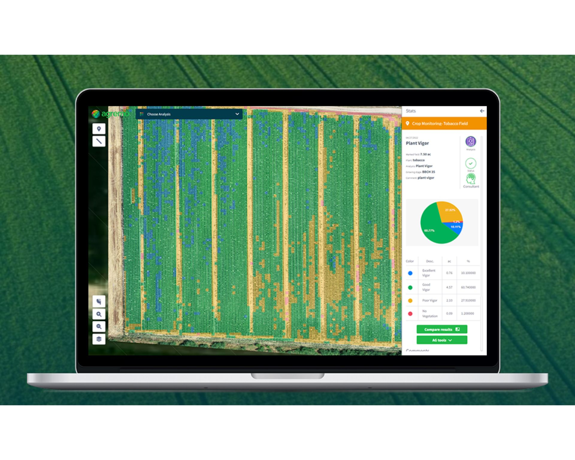 Agremo je platforma pro analýzu zemědělských dat pomocí snímků z dronů i satelitů: umí mimo jiné počítat rostliny (stand count / VR stand count), generovat vegetativní indexy (NDVI a další) pro sledování stavu vegetace, detekovat plevele (i v režimu „green-on-green“), navrhovat mapy pro variabilní dávkování hnojiv nebo postřiků, a nabízí i tzv. „traits“ – vlastnosti plodin, jako např. skládání, poškození větrem, přemokření. Pro velké hráče existuje i špičková varianta s API, lokalizací, white-label řešením a full‑integracemi.