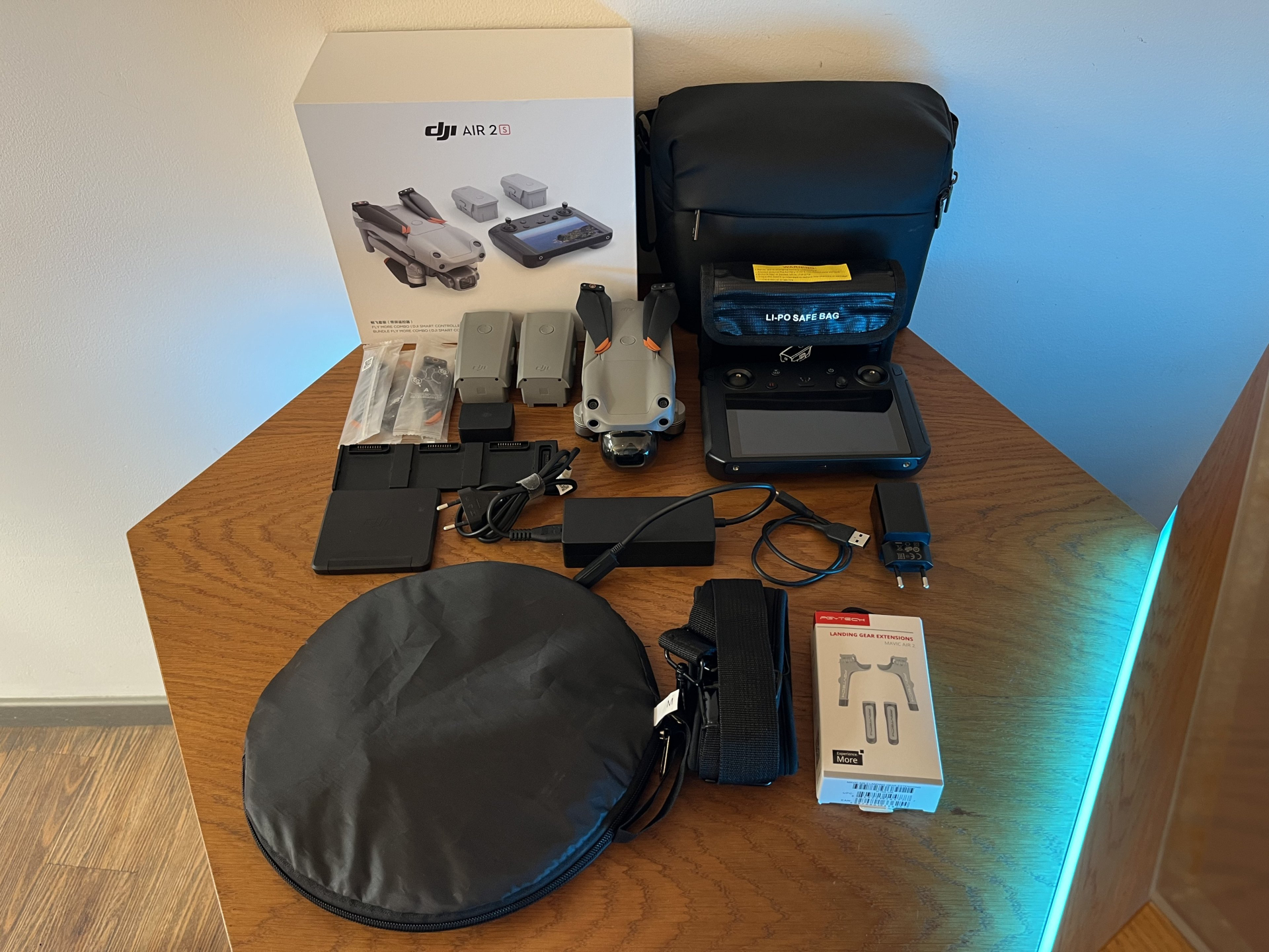 Balíček obsahuje kompletní příslušenství, co Fly More Combo nabízí.