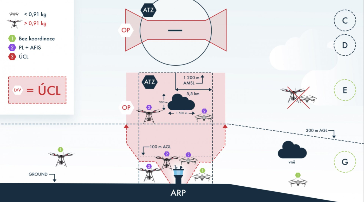 Konkrétní podmínky pro létání s dronem v těsné blízkosti letiště se liší podle velikosti dronu, ale také podle druhu letiště, tedy s řízeným, či neřízeným provozem. Vše jsme zevrubně podrobně probrali v návodném článku včetně názorného videa o létání v blízkosti letišť.