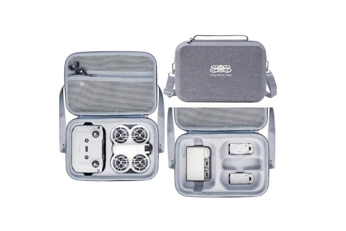 Šedé pouzdro s popruhem přes rameno na dron DJI Neo